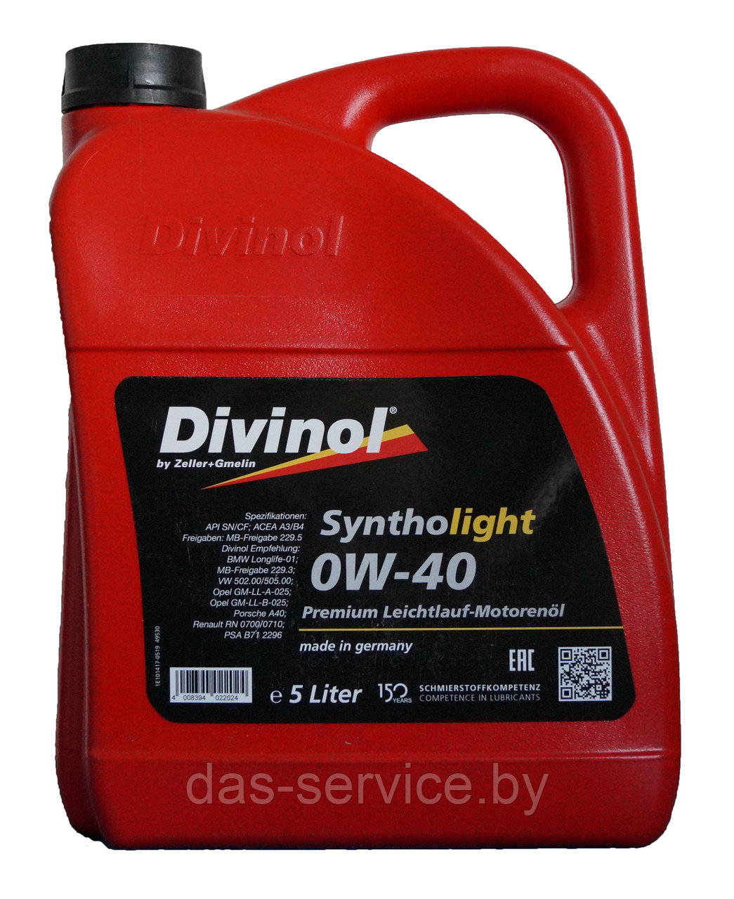 Моторное масло Divinol Syntholight 0W-40 (синтетическое моторное масло 0w40) 5 л.